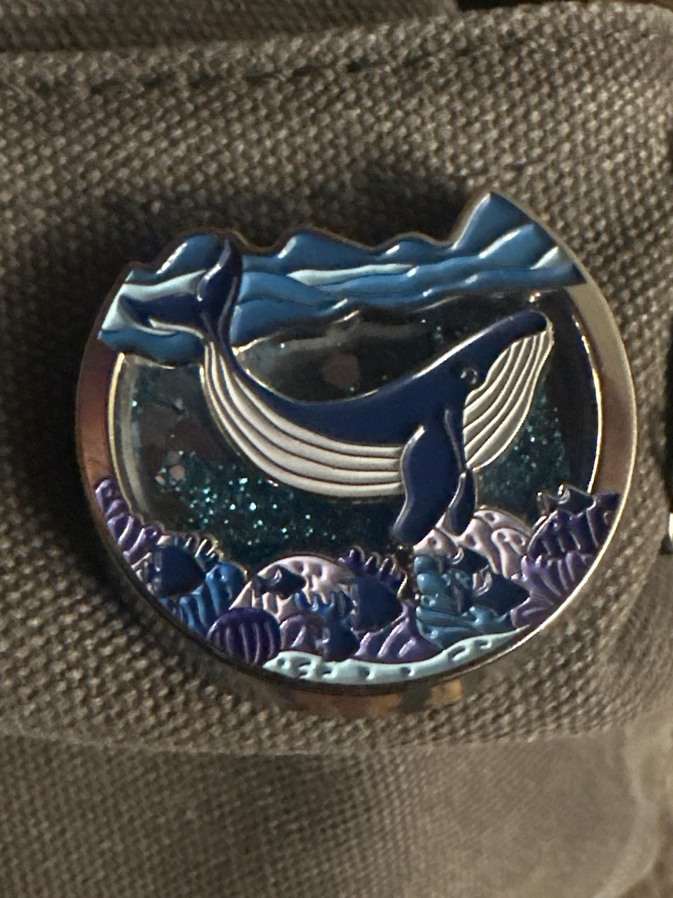 Add this tranquil little whale to your jacket, bag, lanyard, or pin board and bring a peaceful bit of ocean serenity wherever you go. A unique gift for animal lovers, pin traders, and anyone who loves relaxing, whimsical accessories.