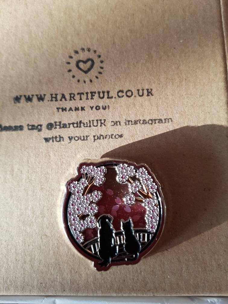 A lovely gift for pin collectors, pet lovers, or anyone who finds beauty in quiet moments under the blossoms.