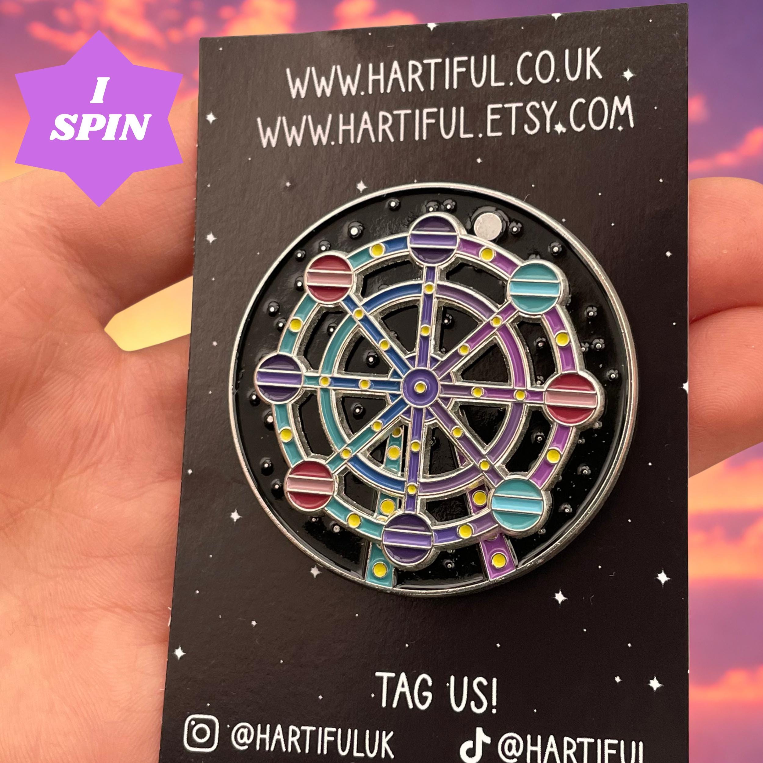 The ferris wheel can spin around, and is a great little fidget pin