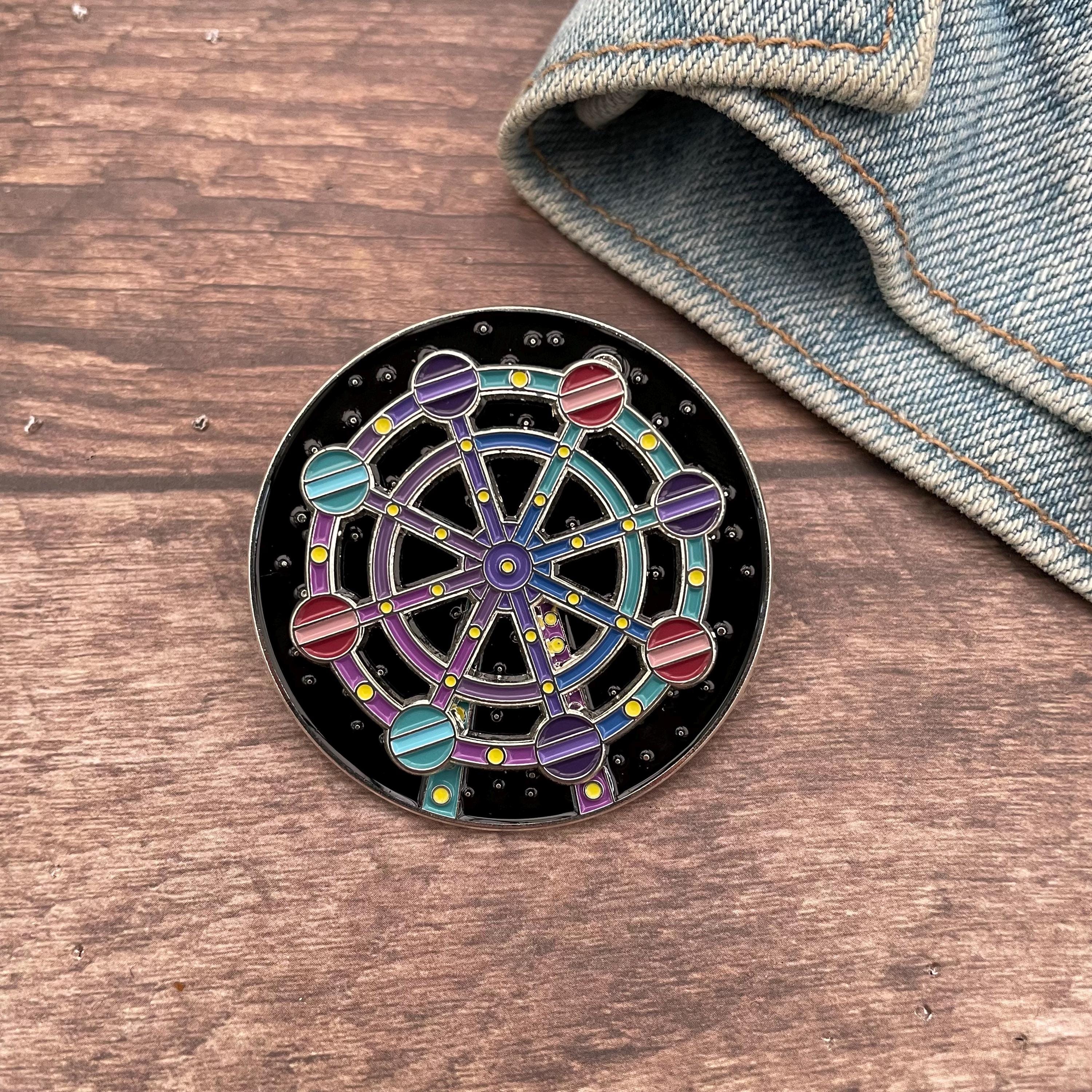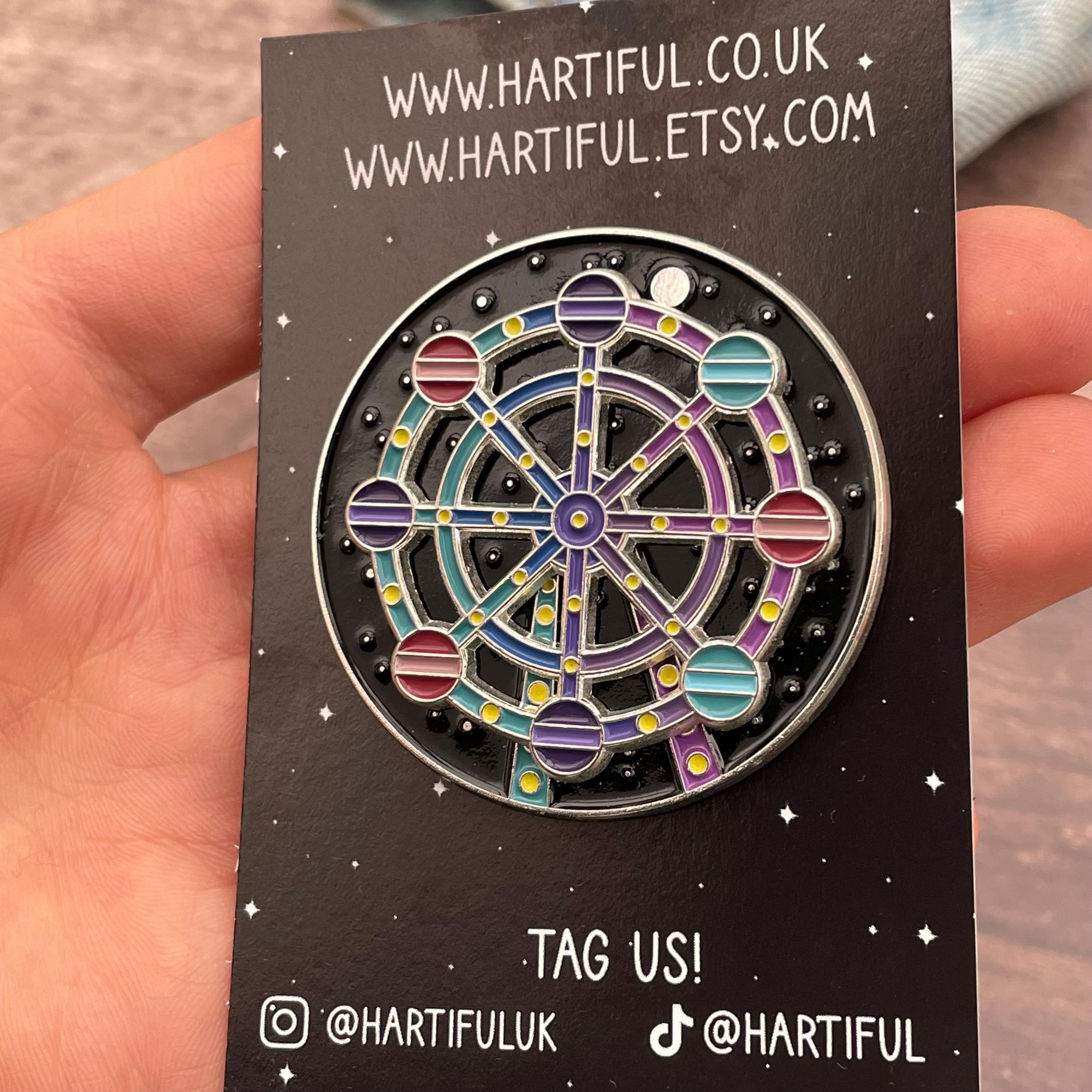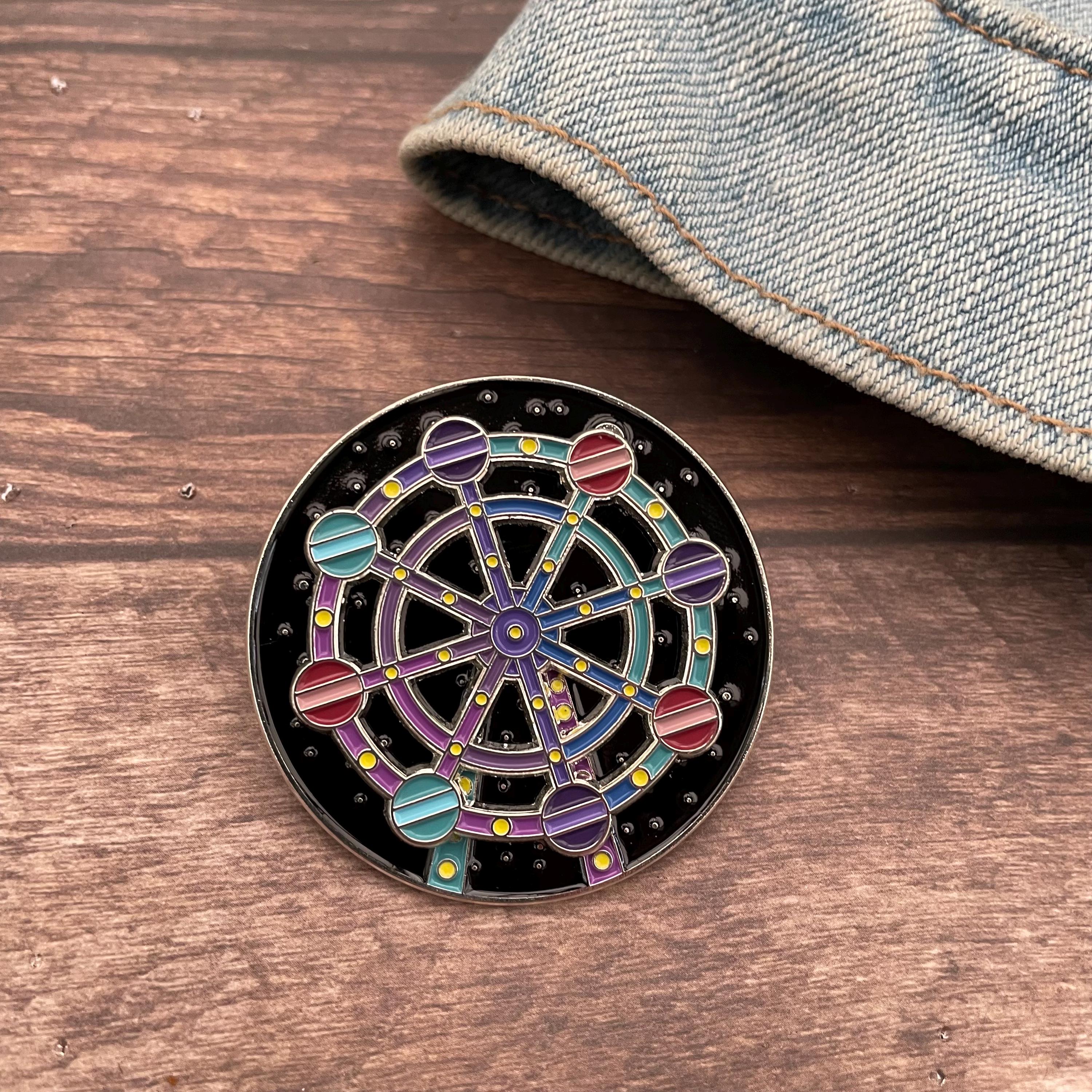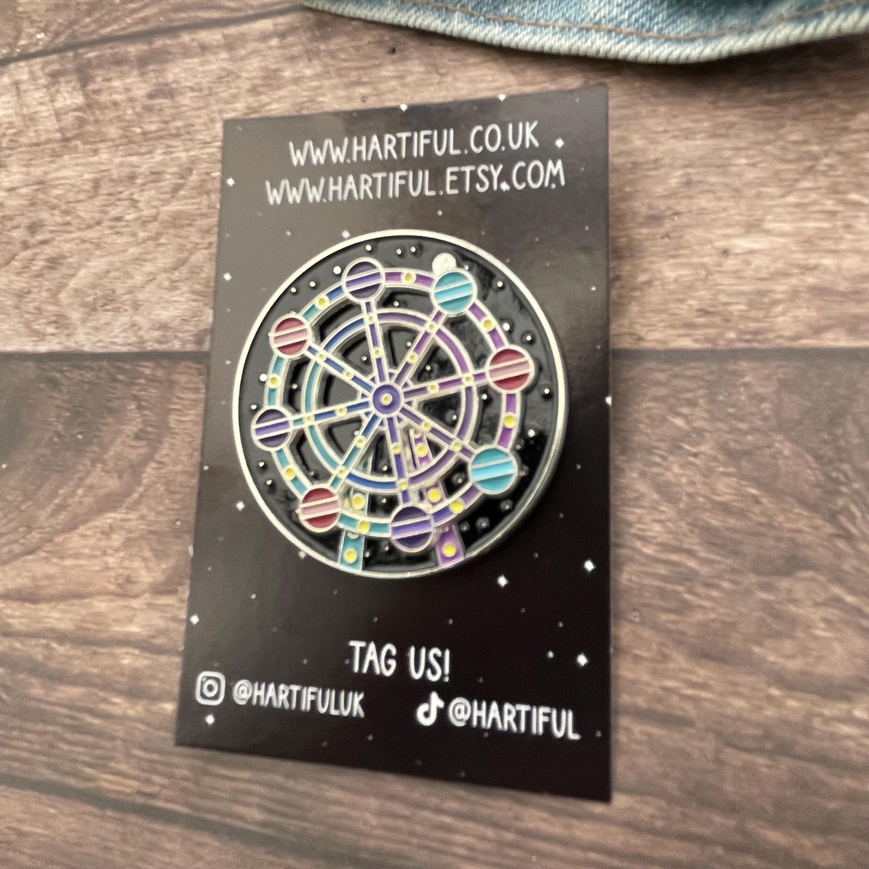 This enamel pin is a little piece of night sky magic ✨🎡 Inspired by the wonder of a ferris wheel ride under the stars, this enamel pin actually moves!