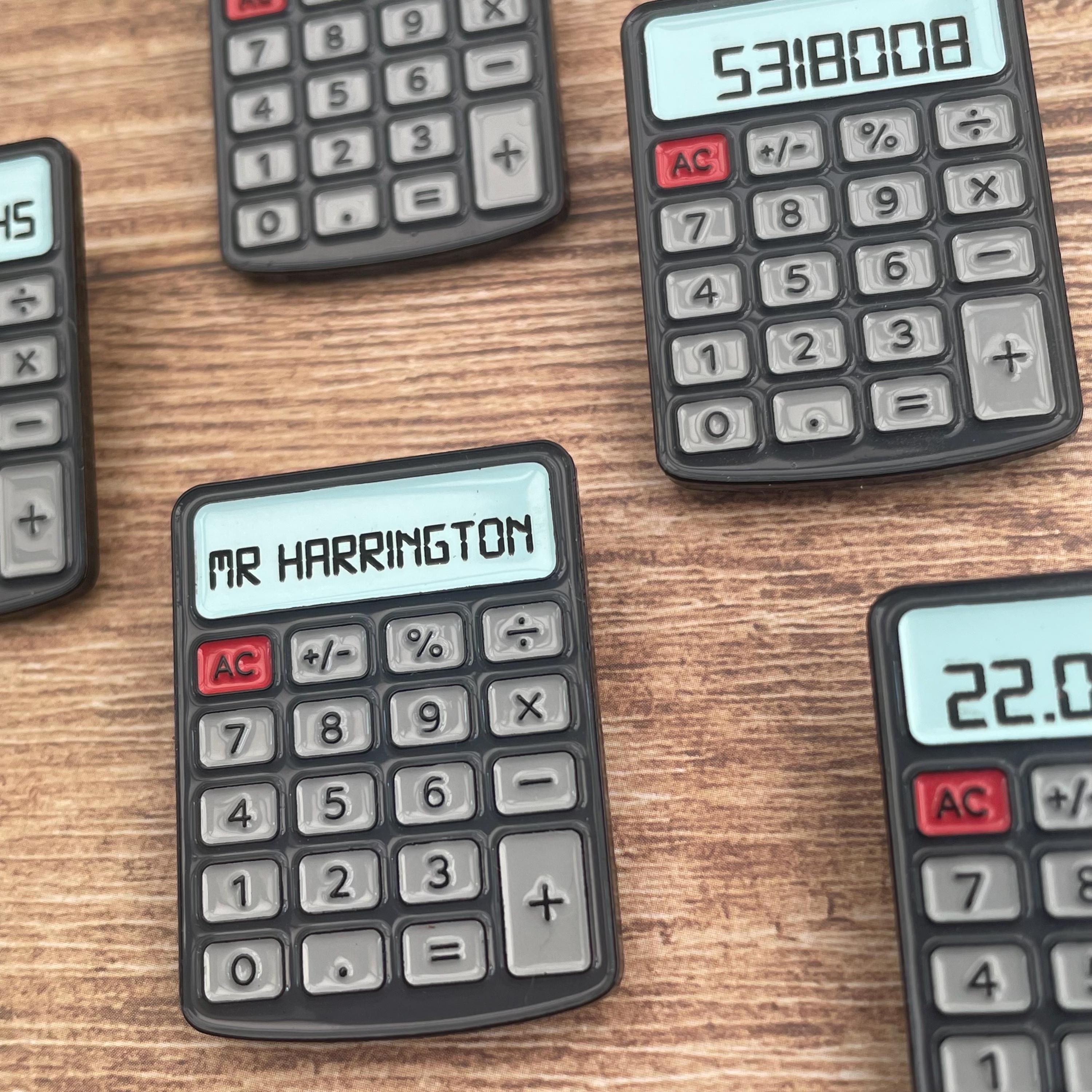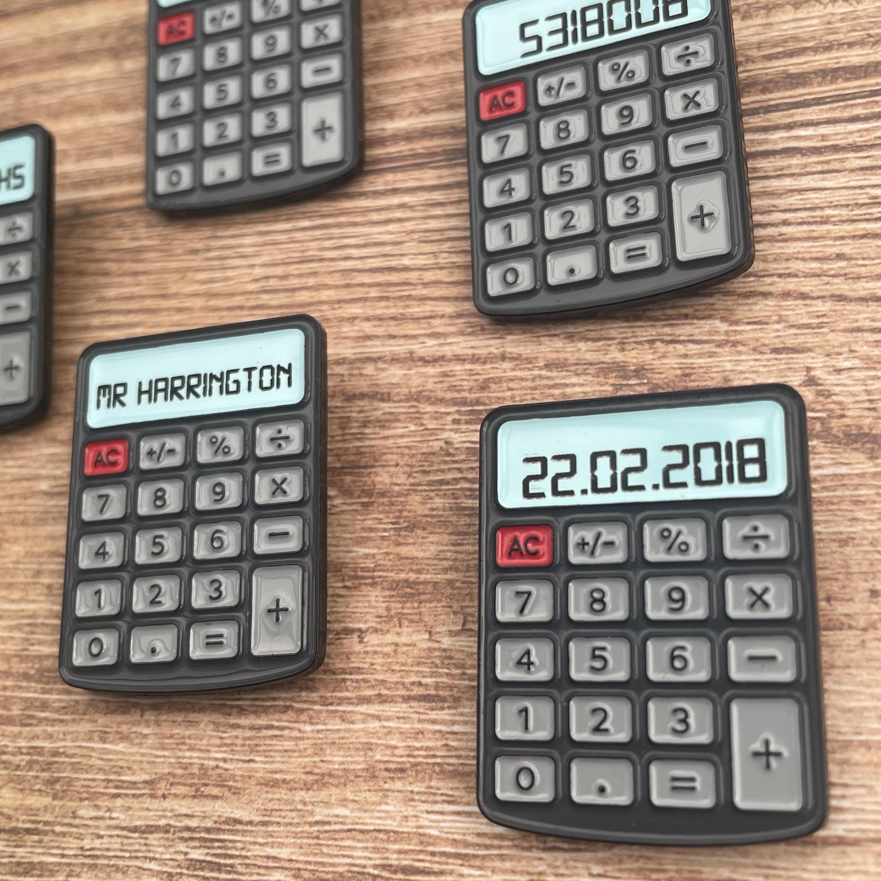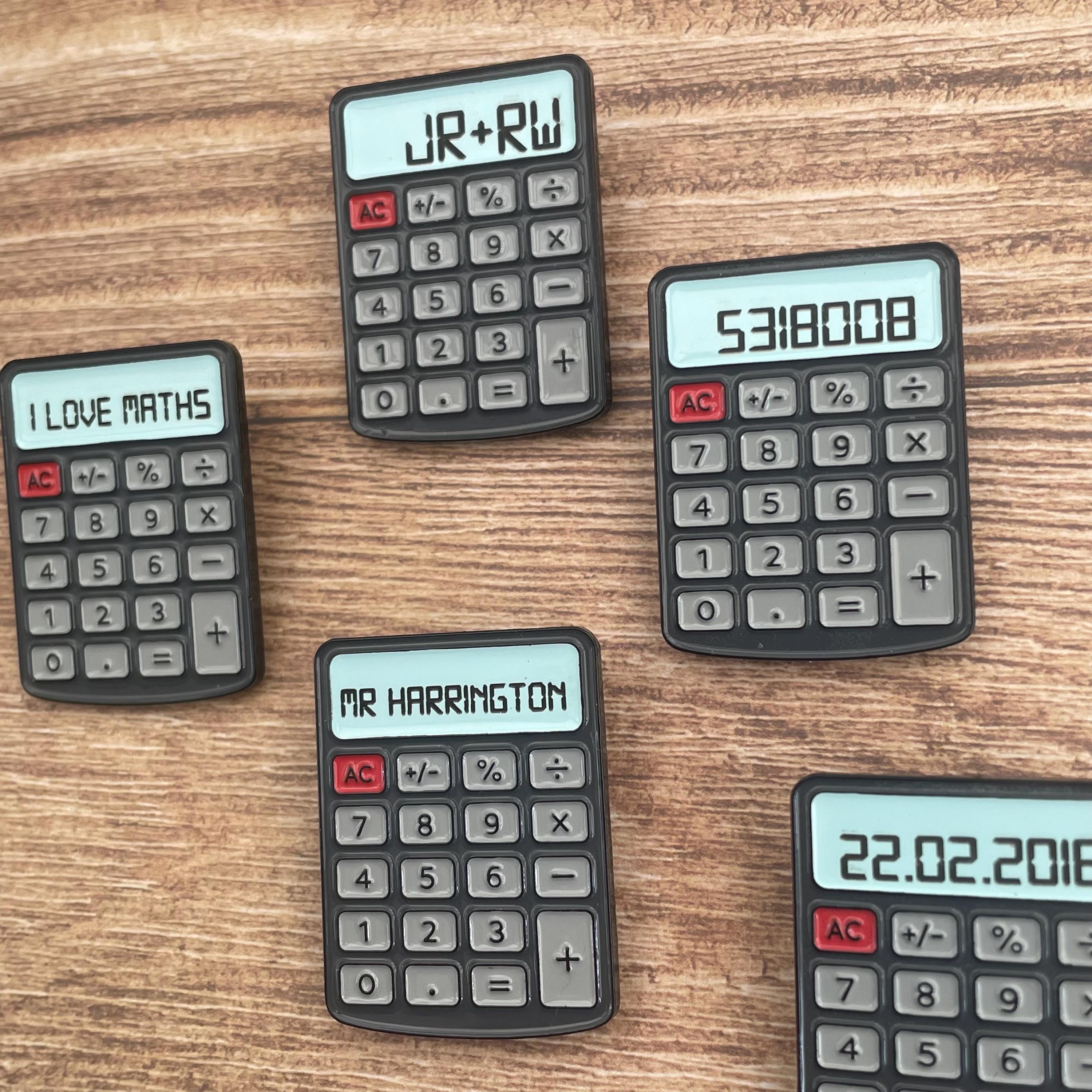 Add up something special with this customisable calculator enamel pin, laser engraved with your chosen text. Perfect for maths lovers, teachers, accountants, students, engineers, or anyone who enjoys a cute and nerdy accessory.